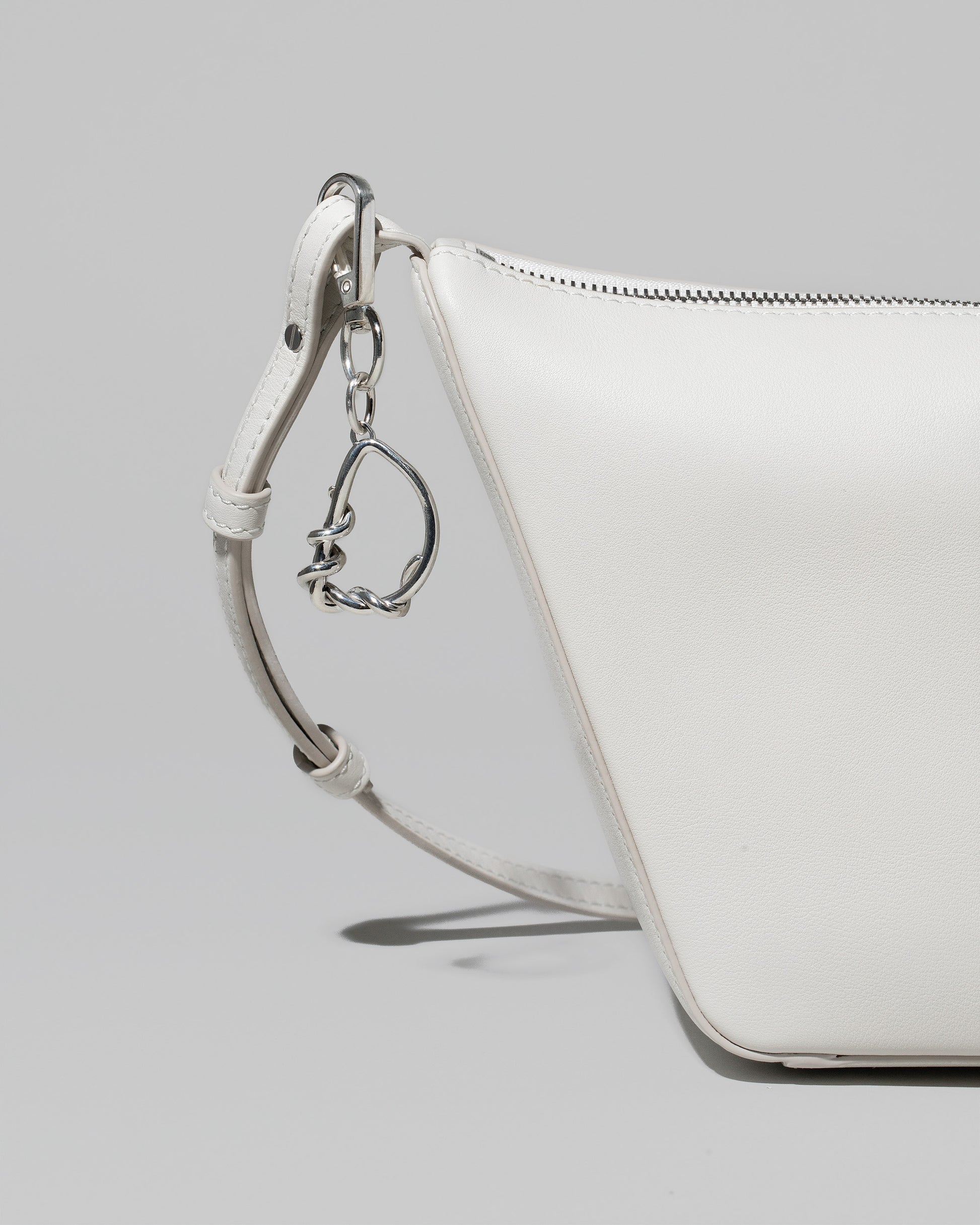 Earth-inspired Letter Bag Charm set in cool silver script lend your personal touch, initial or homage –– and a fine jewelry finish –– to handbags or key rings
