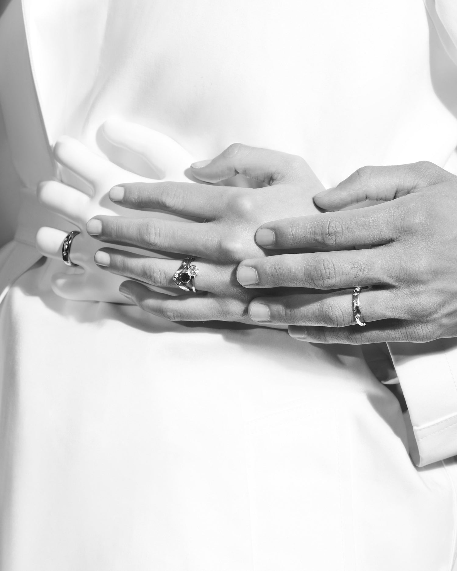 Commitments is a collection of visionary jewelry to support your truest expression of love that challenges mainstream notions of bridal style. Inspired by art deco architecture in 1930s cinematography, Caitlin designed the collection for those seeking to honor their individuality and idiosyncrasy.