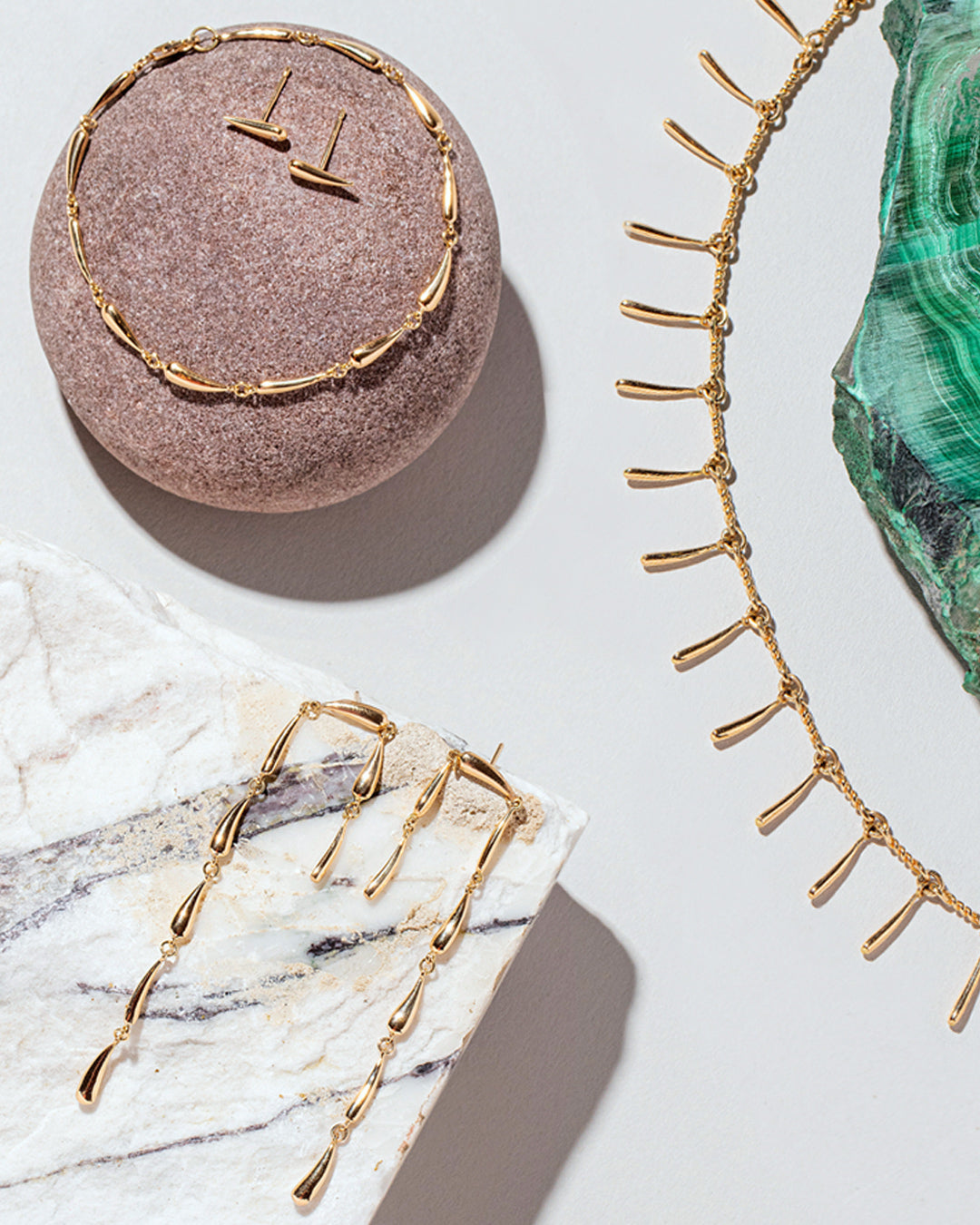 Lush with color, soft edges and goldscapes, The Cut-Outs Collection was born from metamorphosis. As a continuation of the Commitments series, its designs reflect an expanded idea of what it means to commit to a changing internal landscape.
