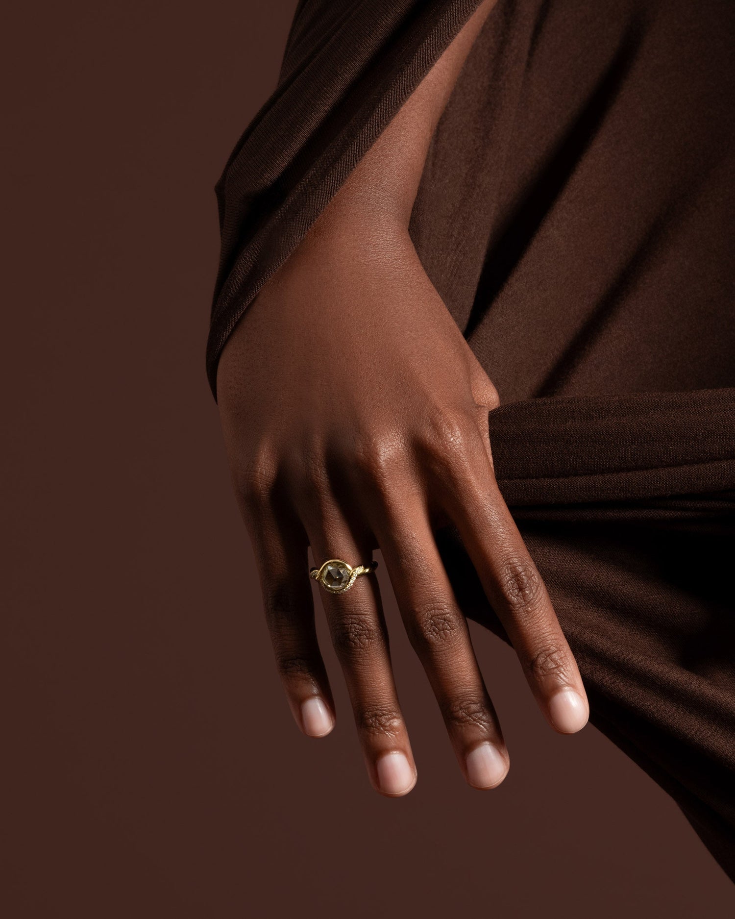Like the draped cloth of Hellenistic marble statues or Jeff Koons’ famous stainless steel balloon dog sculptures, Caitlin was intrigued by the idea of manipulating gold to look like something else, something softer. Under her hands, solid gold stretches and wraps and pulls, taking on the character and energy of textiles. Twist is her first collection of high jewelry.