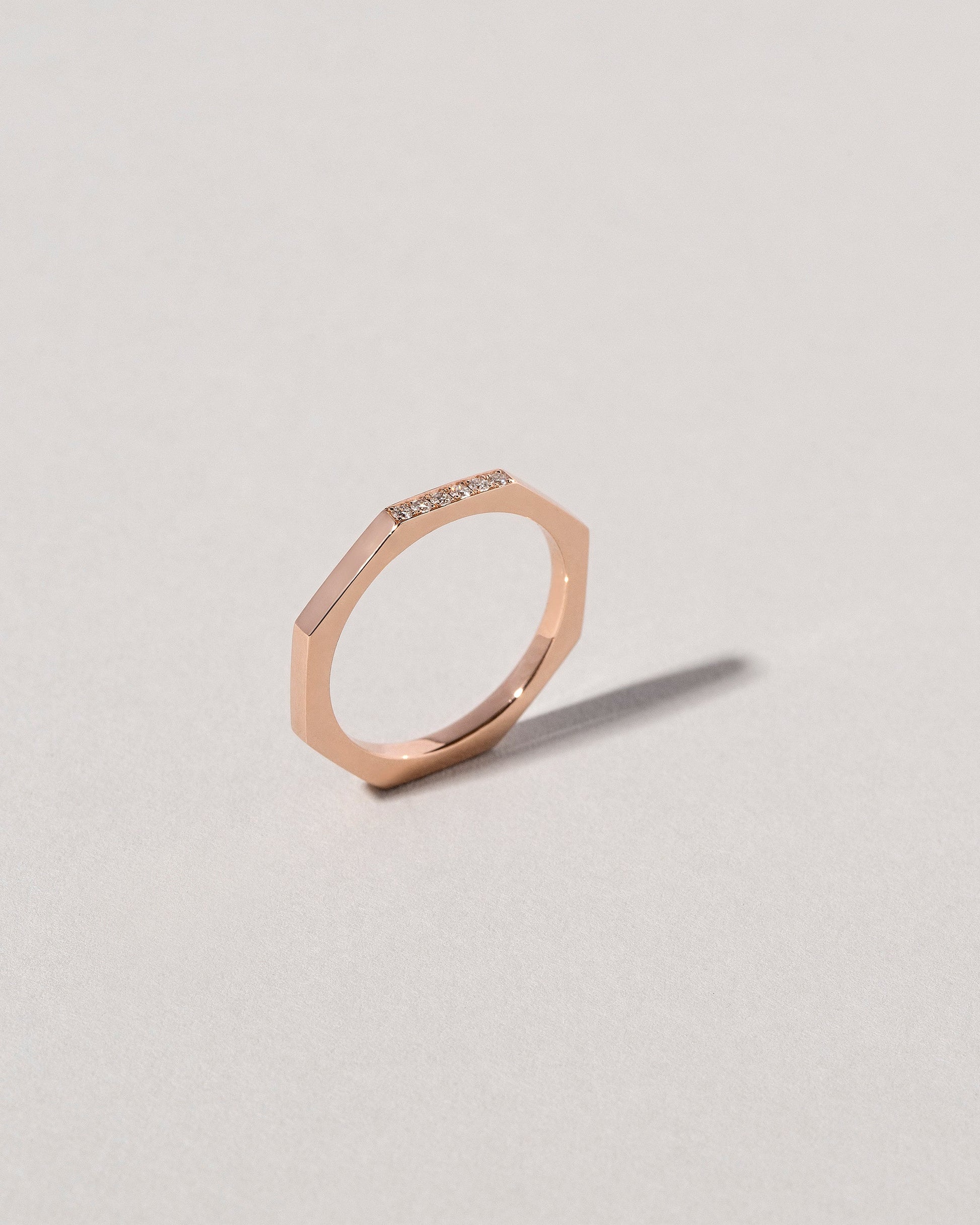 Solid stacking ring band style set by hand in solid gold and solid platinum