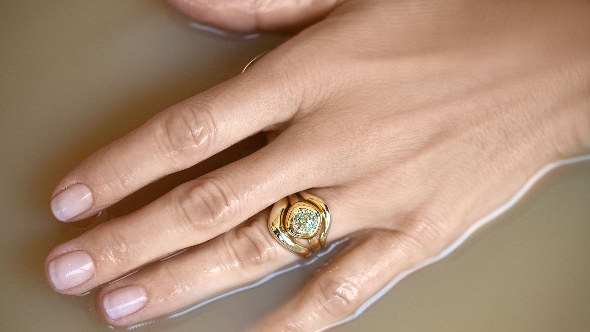 A dozen new band shapes inspired by water's elemental properties. Each designed with its own unique landscape, they stack well with all kinds of rings, adding interest and depth.