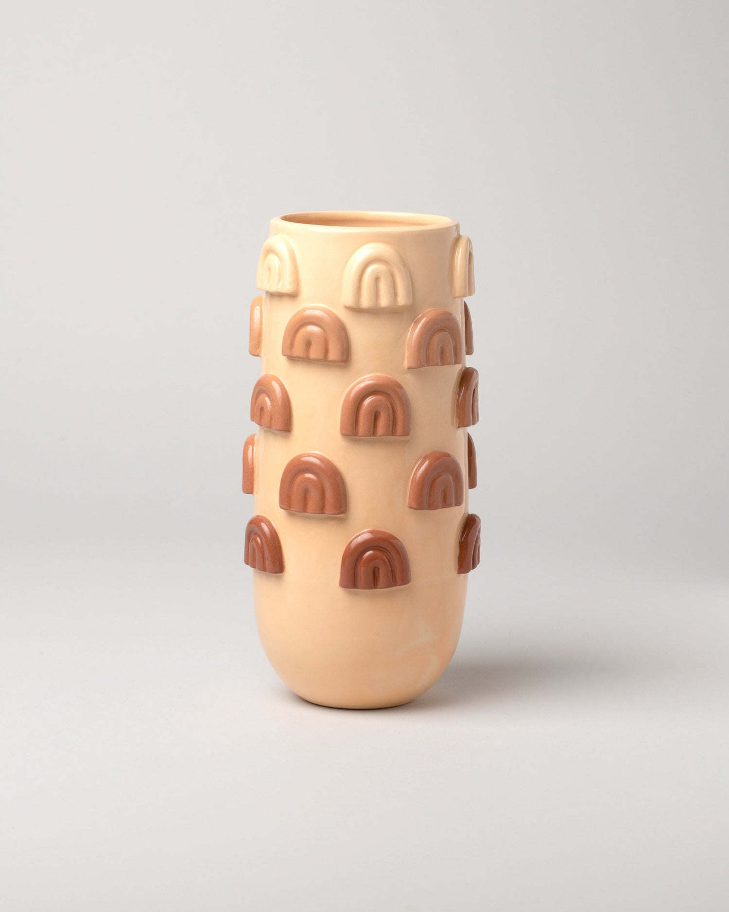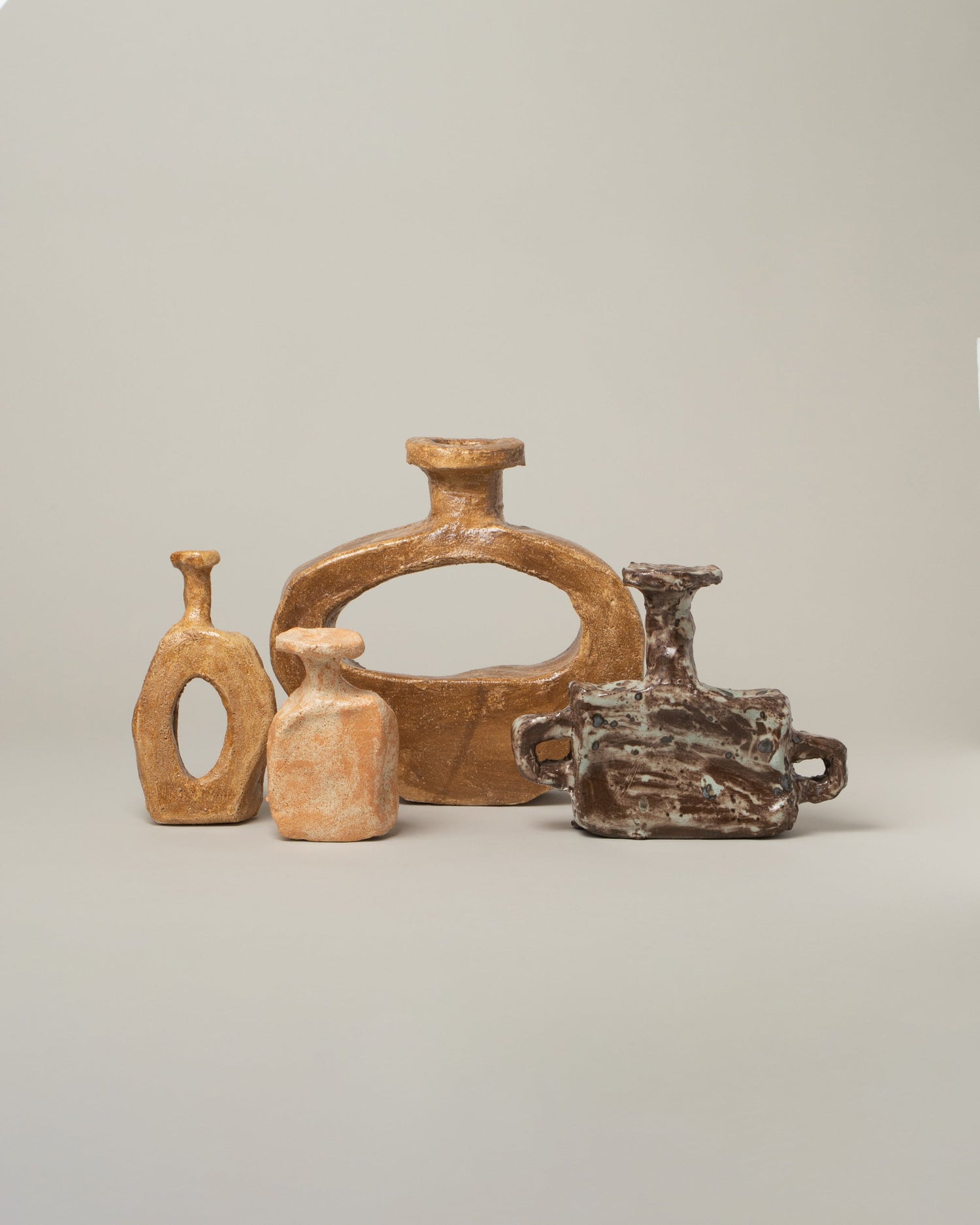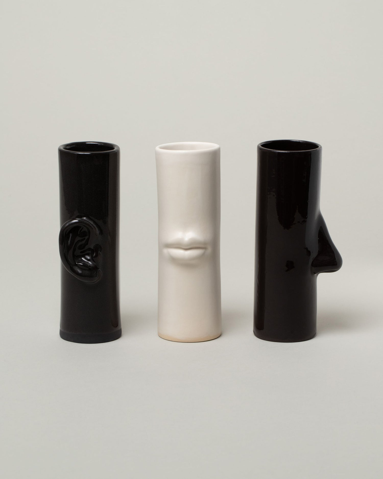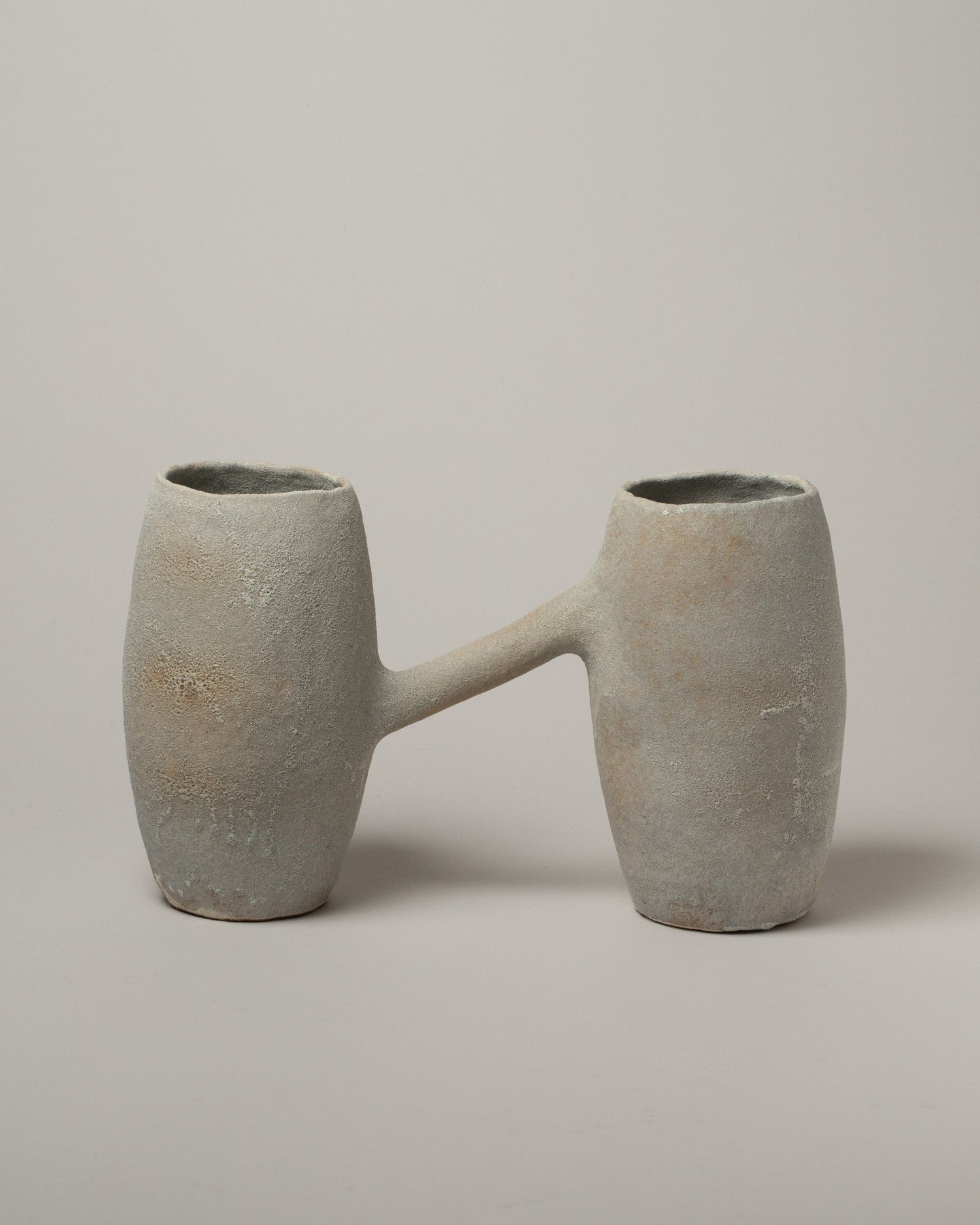 Solenne Belloir is a ceramicist from Paris. She creates objects somewhere between sculpture and design. Her works draw inspiration from the architectural structures found in the Parisian landscape, such as pipes, chimneys, water towers, and balconies. Her pieces are made with high temperature clays. Their unique looks are obtained by associating different techniques such as wheel-throwing and modeling by hand.
